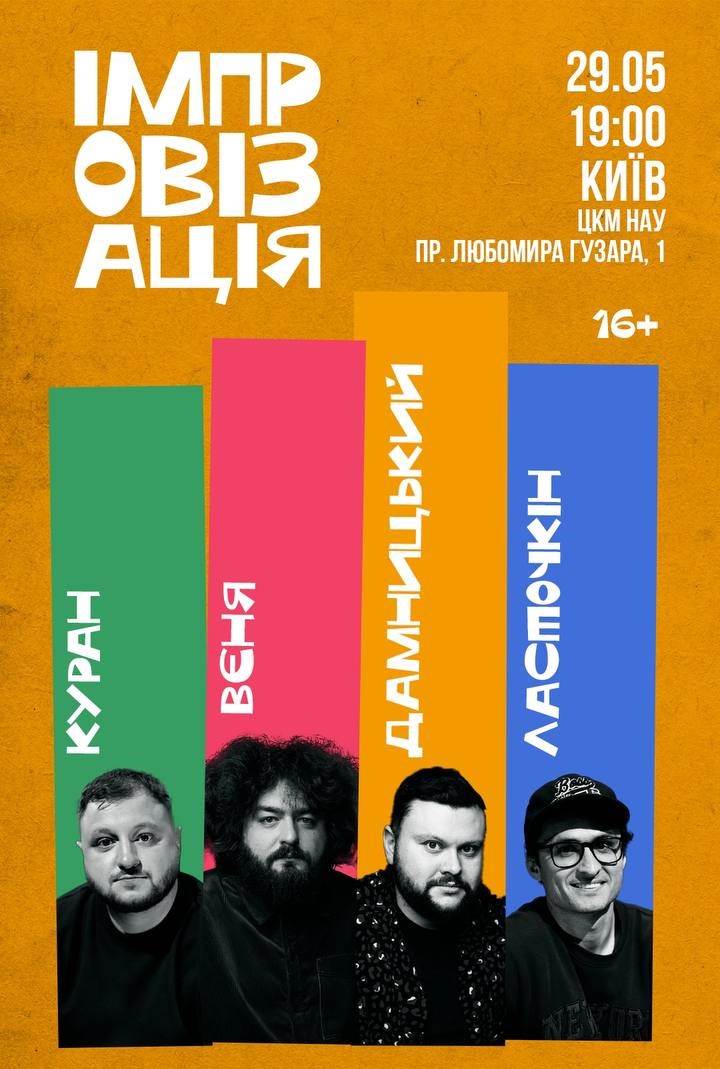 Концерт "Імпровізація" — спеціальний формат, де саме глядачі стають творцями усього, що відбувається на сцені. Тож точно буде весело, цікаво, розривно й непередбачувано! А весь прибуток коміки передадуть на підтримку ЗСУ.