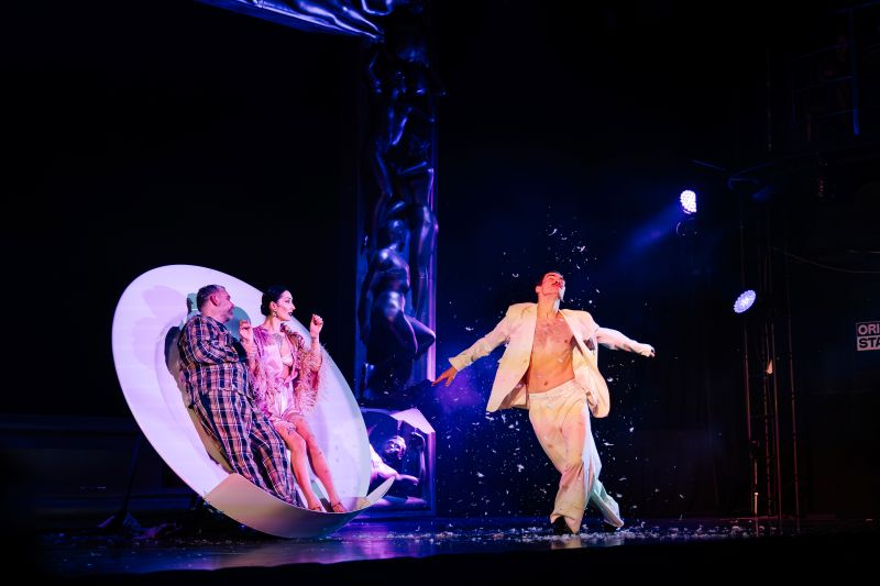 Вистава натхненна романом Жоржі Амаду "Дона Флор і два її чоловіки" — це яскравий еротично-іронічний твір з елементами реалізму, гумору та містики, який досліджує жіноче бажання та баланс між пристрастю та стабільністю.
