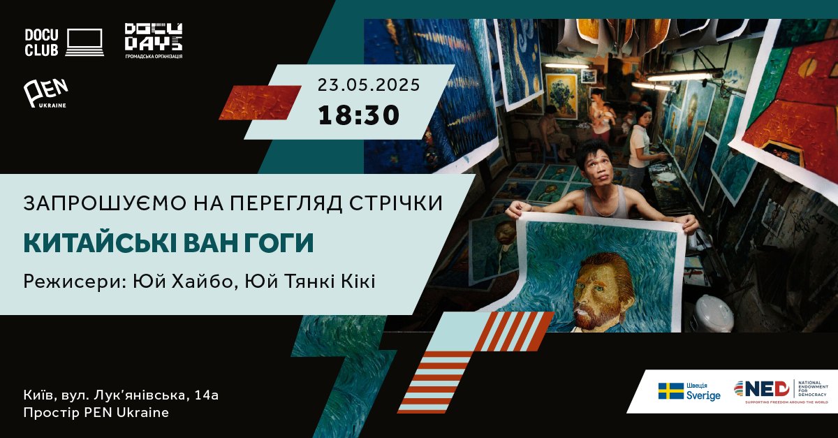 У межах Кіноклубу Docudays UA при Українському ПЕН відбудеться показ документальної стрічки "Китайські ван Гоги" (2016).