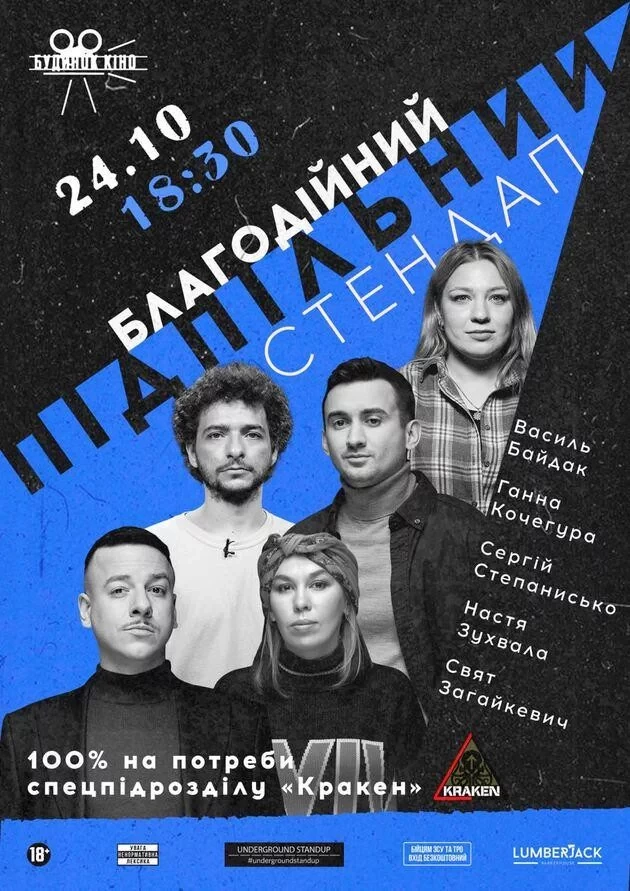 Це буде надзвичайний вечір кращого гумору від проєкту "Підпільний Стендап" в особливому місці — Будинку кіно. Цього разу на Підпільному виступатимуть засновник "ПС" Свят Загайкевич, знаменитий стендапер Василь Байдак, Сергій Степанисько, найкраща комікеса 2023 за версією Underground Standup Awards Ганна Кочегура та Настя Зухвала.
