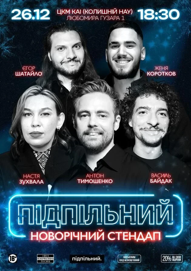 Новорічний Підпільний Стендап із топовими жартами та коміками відбудеться для всіх тих, хто відкладав похід на стендап цілий рік. І, звісно ж, для тих, хто вже давно входить до числа найелітарніших глядачів Підпільного Стендапу. Це чудова можливість зібратись із друзями, тимчасово забути про клопоти та насміятись на рік вперед.