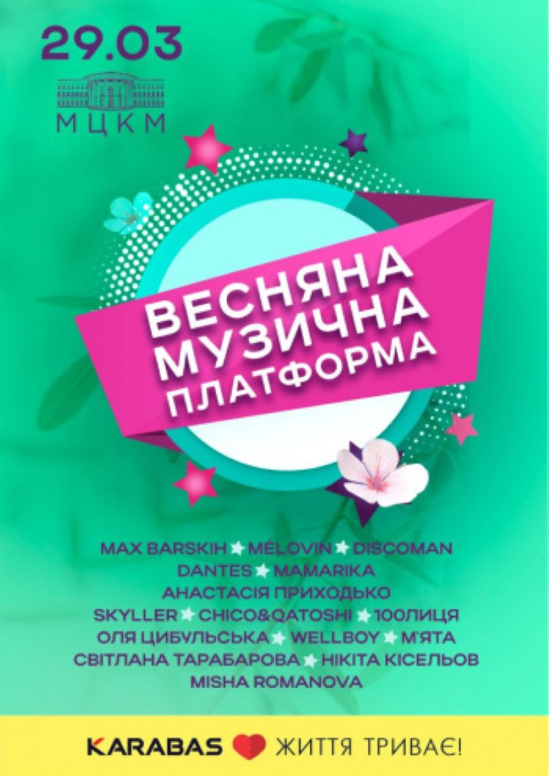 Зірки української сцени знову зберуться в одному місці заради участі в концерті "Музична платформа". Цього разу на вас чекає зустріч із MAX BARSKIH, MÉLOVIN, DISCOMAN, DANTES, MAMARIKA, Анастасією Приходько, SKYLLER, 100ЛИЦЯ, Олею Цибульською, WELLBOY, М'ятою, Світланою Тарабаровою, MISHA ROMANOVA та іншими артистами.
