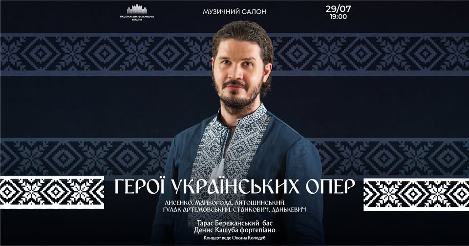У виконанні баса Тараса Бережанського й піаніста Дениса Кашуби прозвучать арії Тараса Бульби, Захара Беркута, Карася з опери "Запорожець за Дунаєм", отця Сильвестра з опери "Ярослав Мудрий", Кривоноса з опери "Богдан Хмельницький", Данила з опери "Страшна помста", Захара з опери "Золотий обруч", а також монологи персонажів, що складають класику українського оперного репертуару.