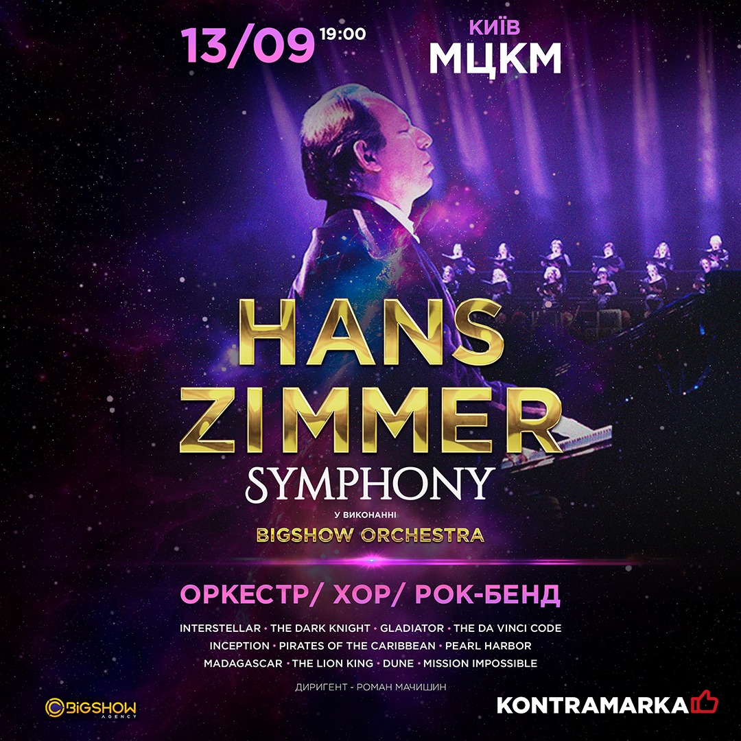 Зустрічай BIGSHOW ORCHESTRA з симфонічним шоу саундтреків Ганса Циммера. Він — ікона Голлівуду, бо без його музики половина всесвітньо відомих блокбастерів могла б залишитися просто непоганими фільмами.