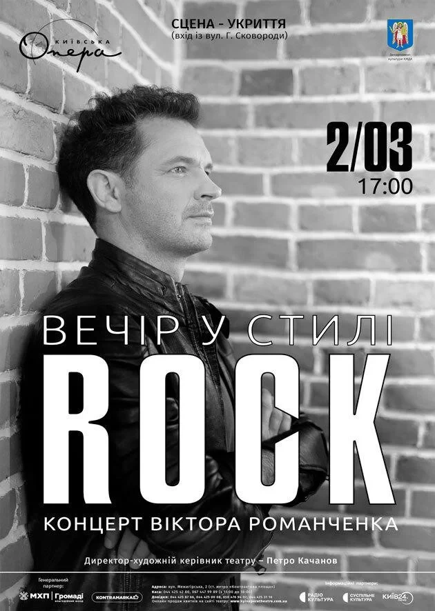 Переможець шоу "Х-фактор-2" Віктор Романченко у програмі "Вечір у стилі Rock" поверне меломанів у вирій світових класичних і сучасних рокових хітів. Глядачі зможуть насолодитися каверами на найпопулярніші композиції гуртів Bon Jovi, Scorpions, Queen, співаків Джорджа Майкла та Адама Ламберта.