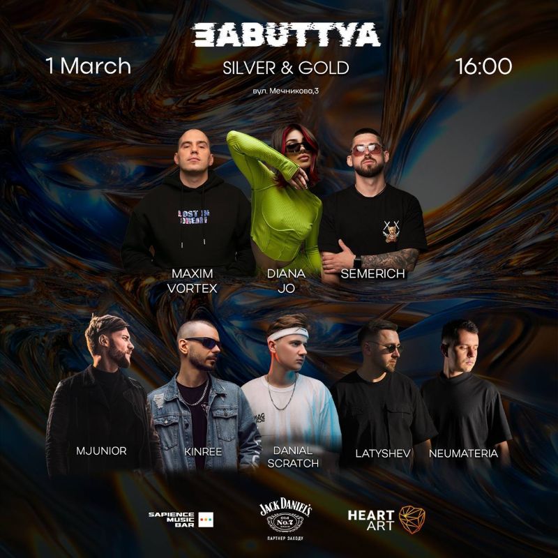 1 березня у клубі Sapience відбудеться довгоочікувана вечірка ЗАBUTTYA. Цієї суботи на тебе чекають золоті вібрації та срібне сяйво, а ще — виступи Danial Scratch, Kinree b2b Mjunior (birthday set), Neumateria b2b Latyshev, Diana Jo, Semerich b2b Maxim Vortex.