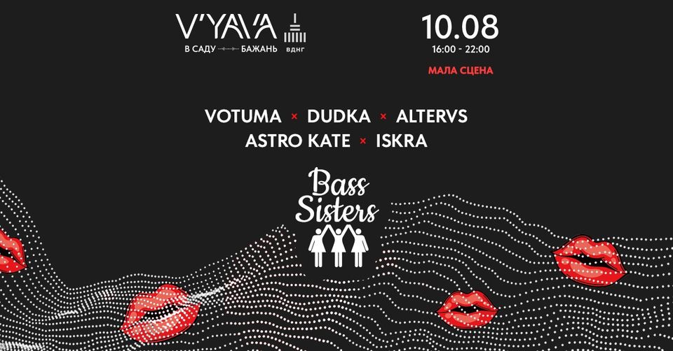 Bass Sisters злітаються до столиці! 10 серпня на малій сцені V'YAVA гарантовано буде не лише якісний саунд, але й неймовірно потужна жіноча енергія, яку дарує ком'юніті діджейок. Вони популяризують басові ритми — d&b, breaks, dubstep.