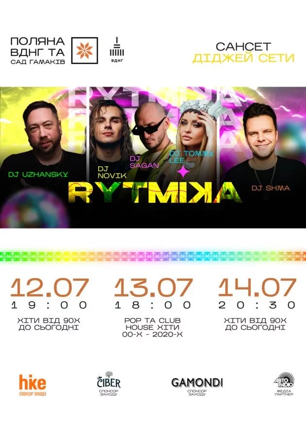 - У суботу — під RYTMIKA, яка виконуватиме хіти 00х-2020х, DJ's NOVIK, TOMMY LEE та SAGAN.