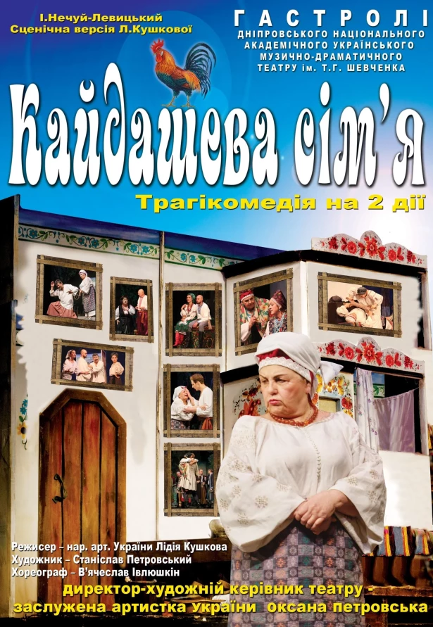 Дніпровський музично-драматичний театр ім. Т. Шевченка представляє в Києві трагікомедію за мотивами повісті Івана Нечуя-Левицького. Одвічний сюжет про стосунки батьків та дітей, невісток та свекрух, спадкоємність поколінь постає на сцені в трагікомічному ключі. Маруся Кайдашиха й Омелько, їхні сини Карпо та Лаврін, невістки Мотря та Мелашка уособлюють національні українські характери. Які випробування долі на них чекають? Про це — у виставі з талановитим акторським ансамблем.