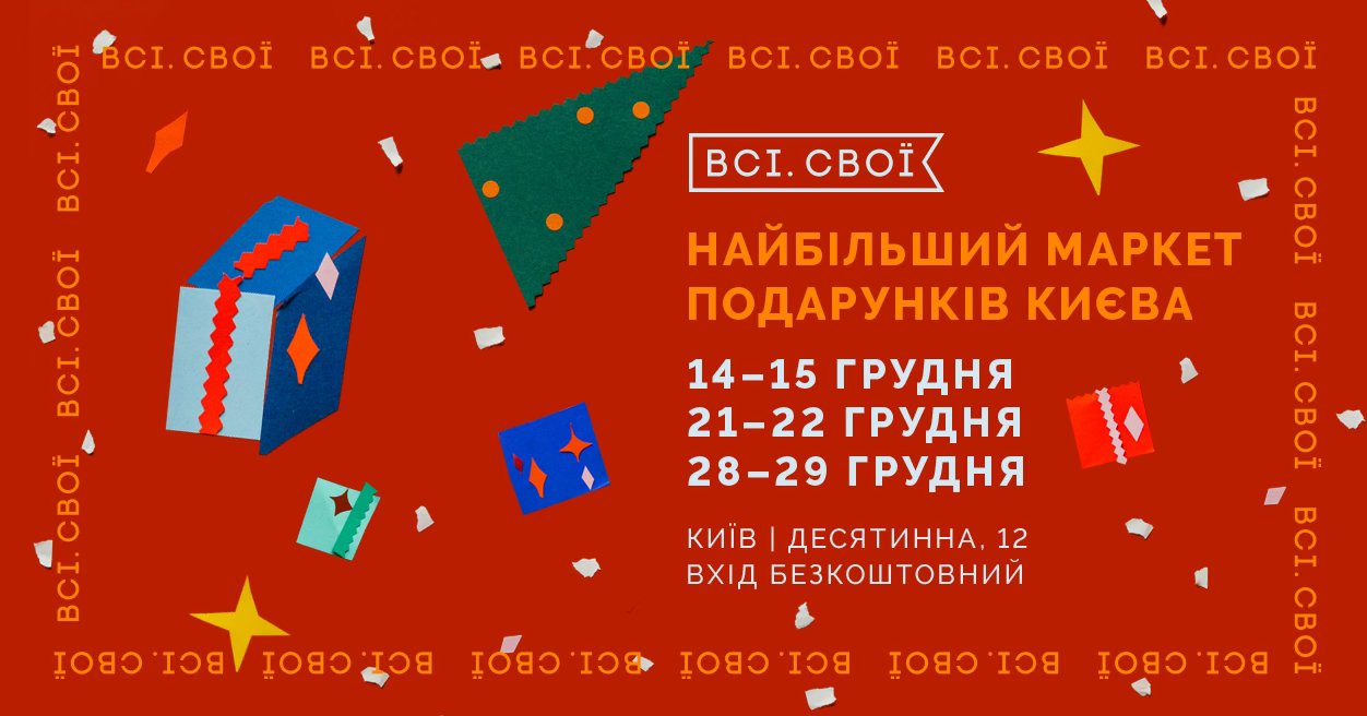 Грудень — це час готувати подарунки! Маркет "ВСІ. СВОЇ" вкотре збере найкращі українські бренди в одному місці, щоб ти міг ці подарунки придбати: рідним та близьким, друзям та колегам і, звісно, собі.