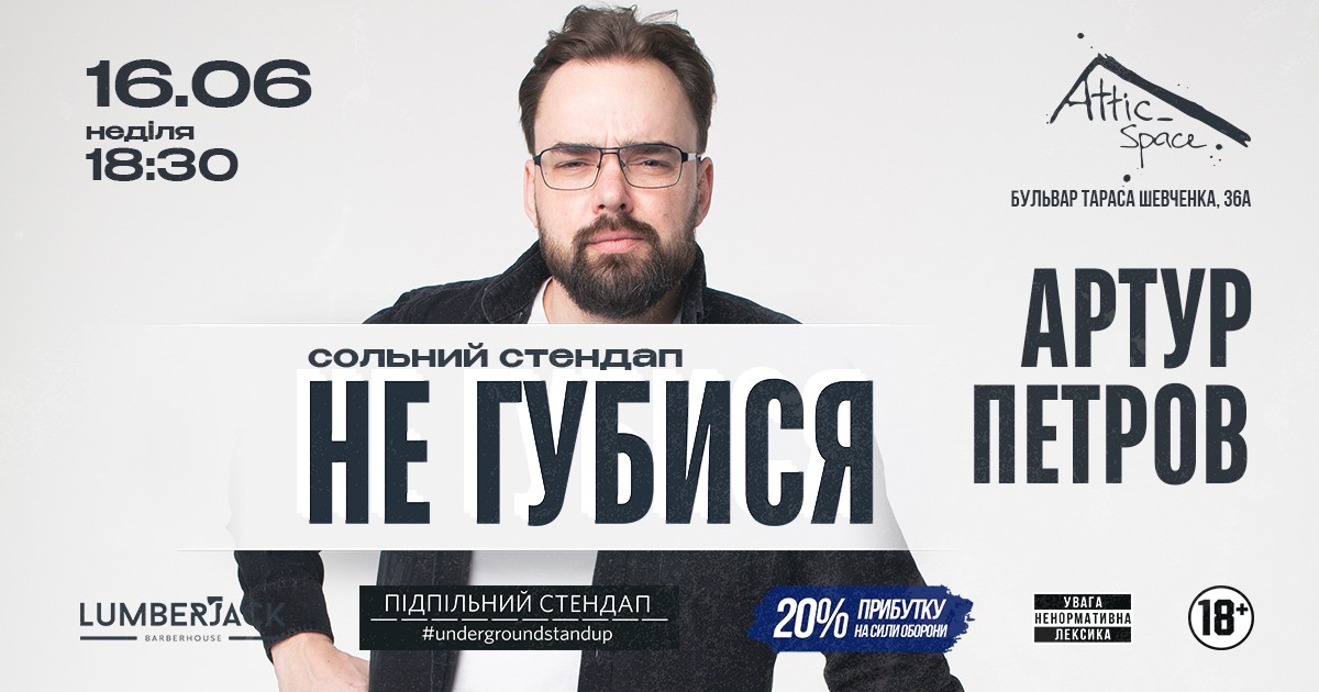 Комік "Підпільного Стендапу" Артур Петров запрошує на свій сольний стендап-концерт. "Буде класна, позитивна, життєва комедія, — каже Артур. — Написав багато нового. Розписав і добив заходи з улюбленого вами проєкту "Підпільні розгони". Короче, буде крутий вечір розпайки і доброго гумору!"