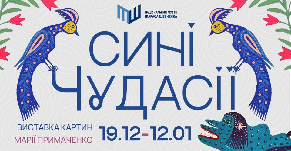 На цій виставці представлено 35 унікальних робіт Марії Примаченко з колекції Національного музею Тараса Шевченка у синьому та блакитному кольорах.
