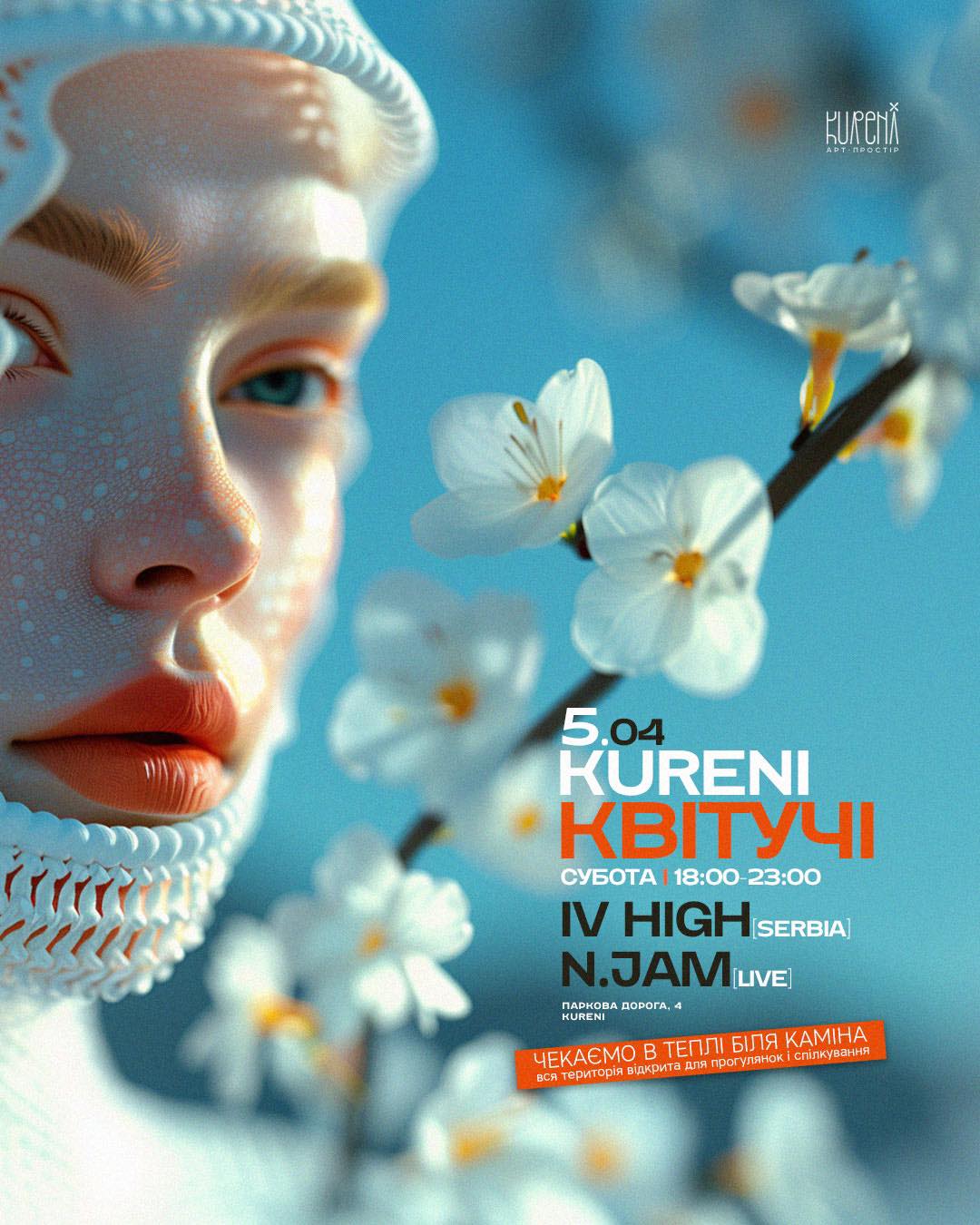 Першу квітневу суботу зустрічаємо в теплі біля каміна серед неймовірних звуків, але вся територія KURENI відкрита — гуляй, вечеряй на фудкорті, спілкуйся з близькими по духу, а потім повертайся до вогню й музики.