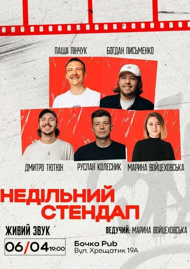 Лайнап: Богдан Письменко, Дмитро Тютюн, Руслан Колесник, Паша Пінчук. Ведуча — Марина Войцеховська.