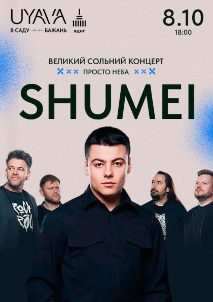 Цієї неділі на ВДНГ в артпросторі UYAVA пройде сольний концерт виконавця SHUMEI. Кожен трек SHUMEI — це абсолютний хіт, що несе в собі нестандартні та мелодійні гармонії, потужний, унікальний вокал і шалену енергію. На вас чекають хіти "Біля Тополі", "Буревіями", "Тривога" та "Пробач".