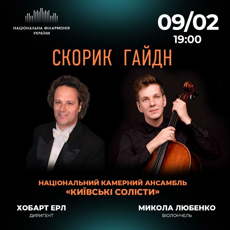 Національний камерний ансамбль "Київські солісти", диригент Хобарт Ерл та віолончеліст Микола Любенко запрошують у захопливу подорож крізь різні епохи, об'єднану майстерністю видатних композиторів — Мирослава Скорика та Йозефа Гайдна. Завітай, щоб насолодитися різноманіттям музичних стилів і пережити неймовірні емоції!