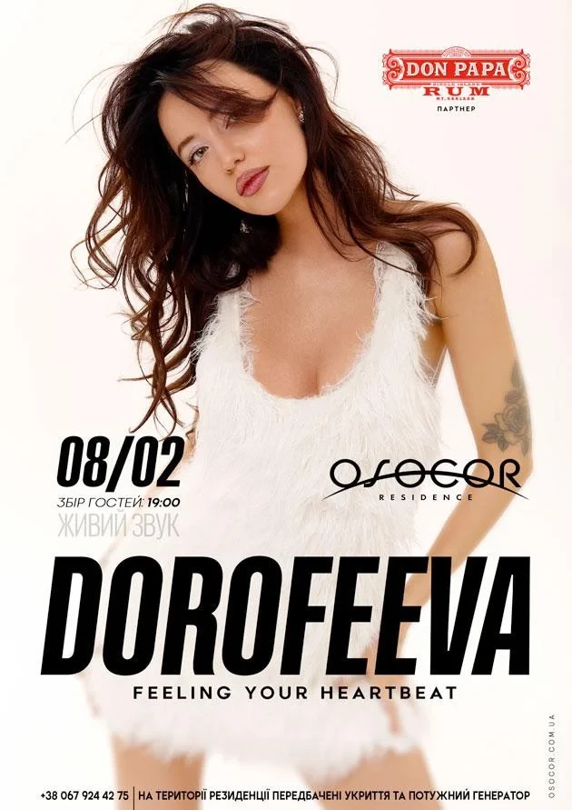 Цього вечора DOROFEEVA презентує в Osocor Residence FEELING YOUR HEARTBEAT — камерну програму, в якій наживо звучатимуть її найпопулярніші "Хай пишуть", "А я все плакала", "Кохаю, але не зовсім", "Хартбіт", а також композиції з альбому HEARTBEAT. Звучатиме найстильніше!