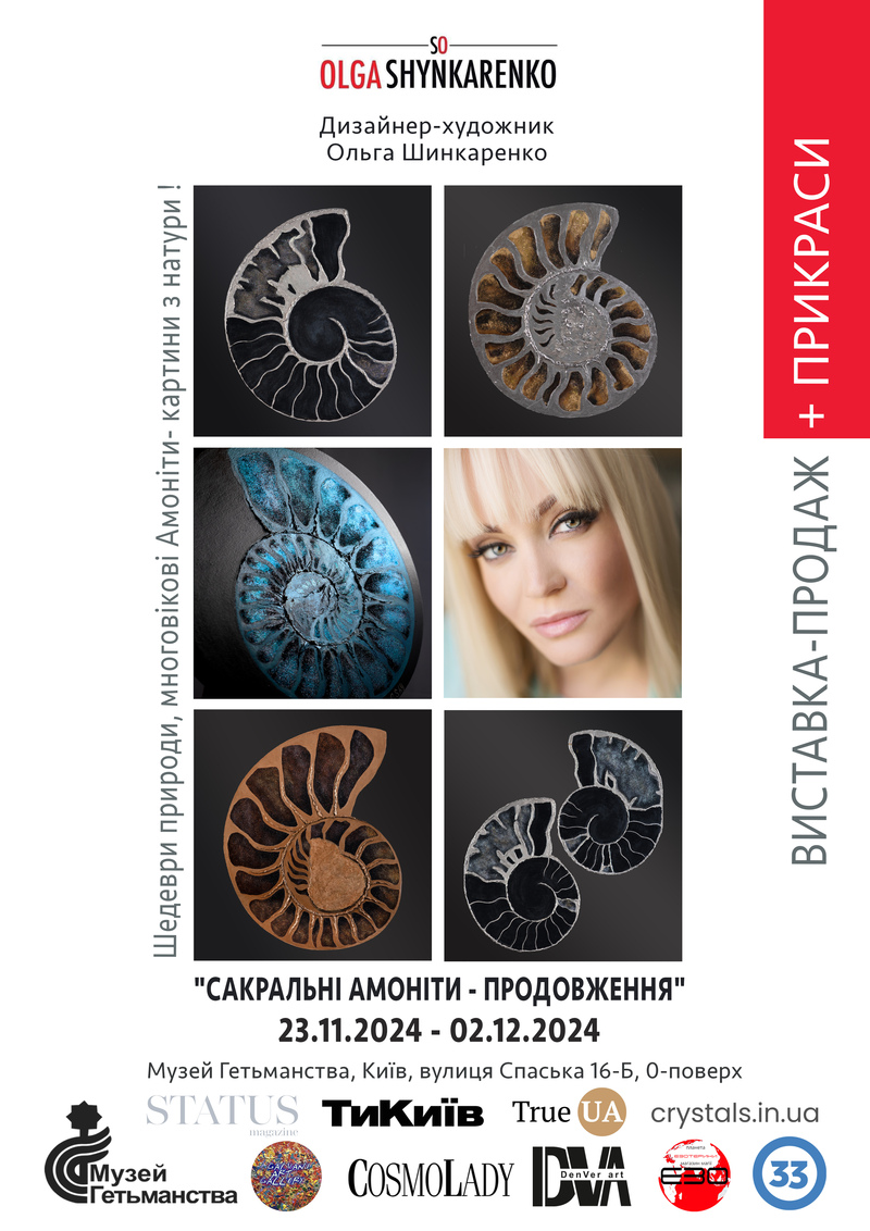 У столиці відбудеться експериментальна виставка художниці Ольги Шинкаренко "Сакральні Амоніти — Продовження". В експозиції представлено 45 картин-оберегів, виконаних у різних авторських техніках.