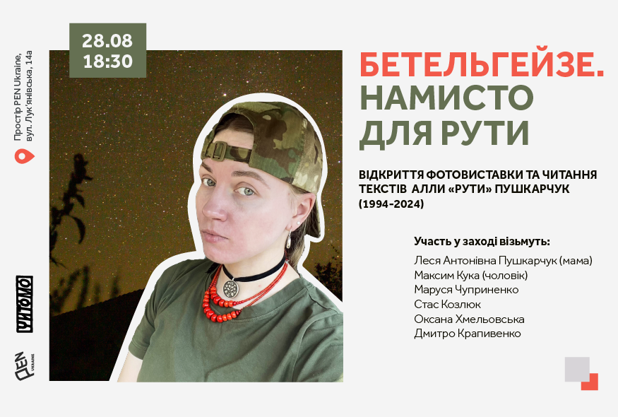 Киян і гостей столиці запрошують на відкриття фотовиставки Алли Пушкарчук (Рути) (1994–2024) "Бетельгейзе. Намисто для Рути".