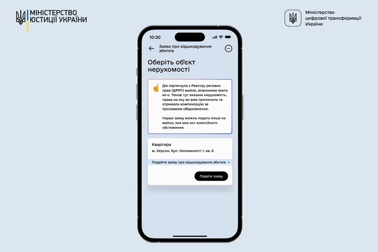У столиці відкрили Офіс реєстру збитків, завданих російською федерацією. Там працюватиме приблизно 10 людей — це юристи та комунікаційники. Київський Офіс допомагатиме співпрацювати з українським урядом, правоохоронцями та громадськими організаціями. Для подання заявки на відшкодування використовуватимуть портал "Дія". Реєстр очікує на безпрецедентну кількість заяв — до 8 мільйонів. У майбутньому планують впровадити подання звернень на відшкодовування офлайн — через місцеві ЦНАПи.