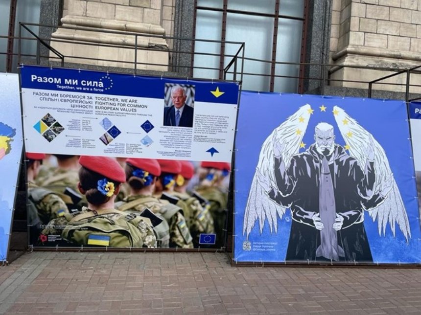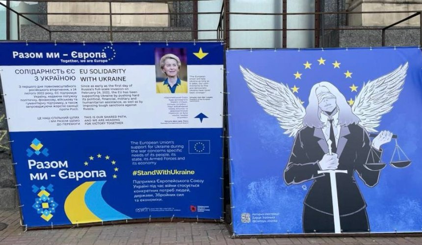 До Дня Європи на Хрещатику біля Головпоштамту відкрилась виставка, присвячена відносинам України та ЄС.