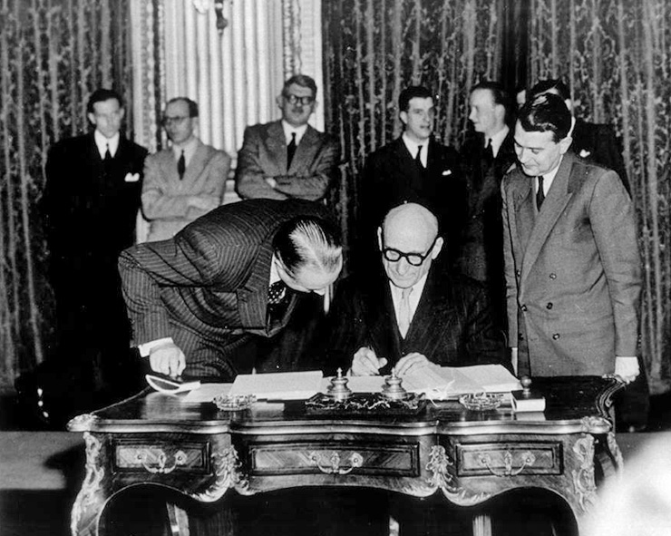 Відтак 18 квітня 1951 року в Парижі підписали договір про створення Європейської спільноти вугілля та сталі. Спершу його ратифікували шість країн: Франція, Німеччина, Італія та країни Бенілюксу – Бельгія, Нідерланди й Люксембург. Згодом долучилися й інші.