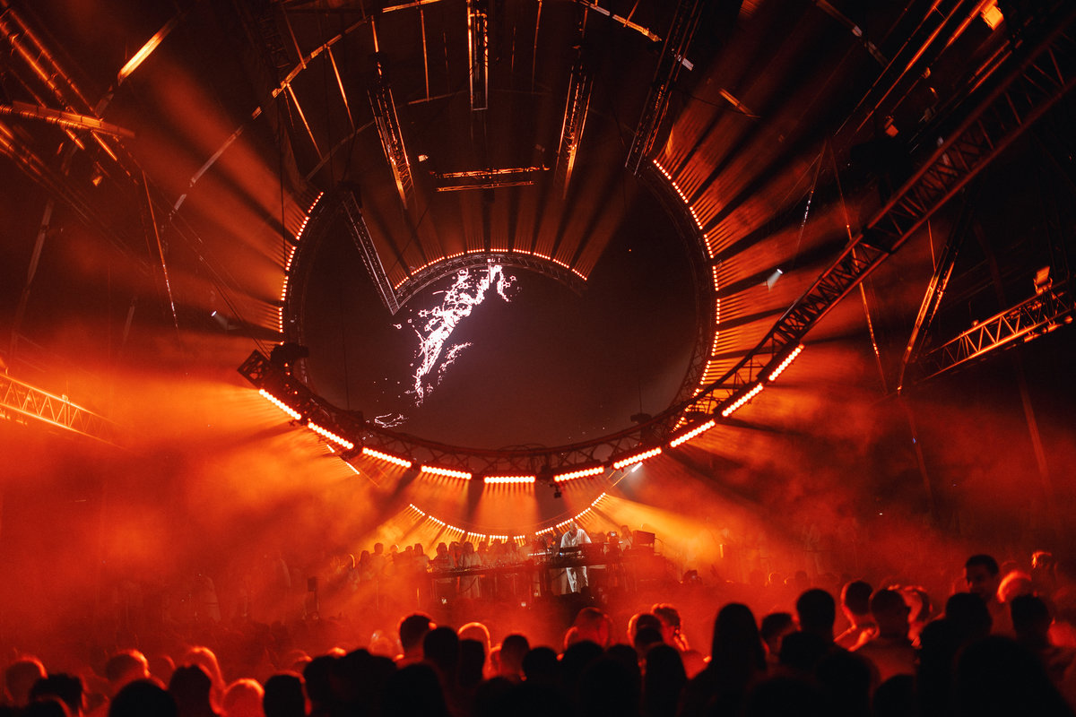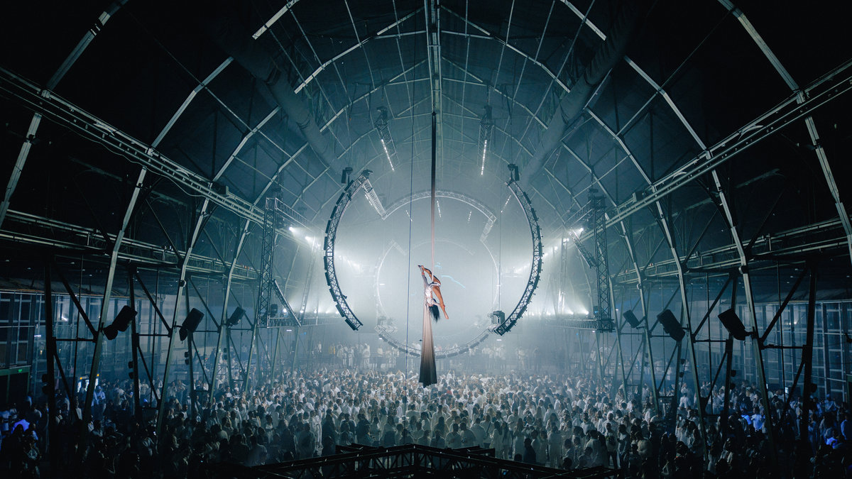 Частиною шоу став повітряно-гімнастичний перформанс у поєднанні з музичними сетами, що створював ефект повної присутності в іншому вимірі, де звук, рух і світло працювали як єдиний живий механізм.