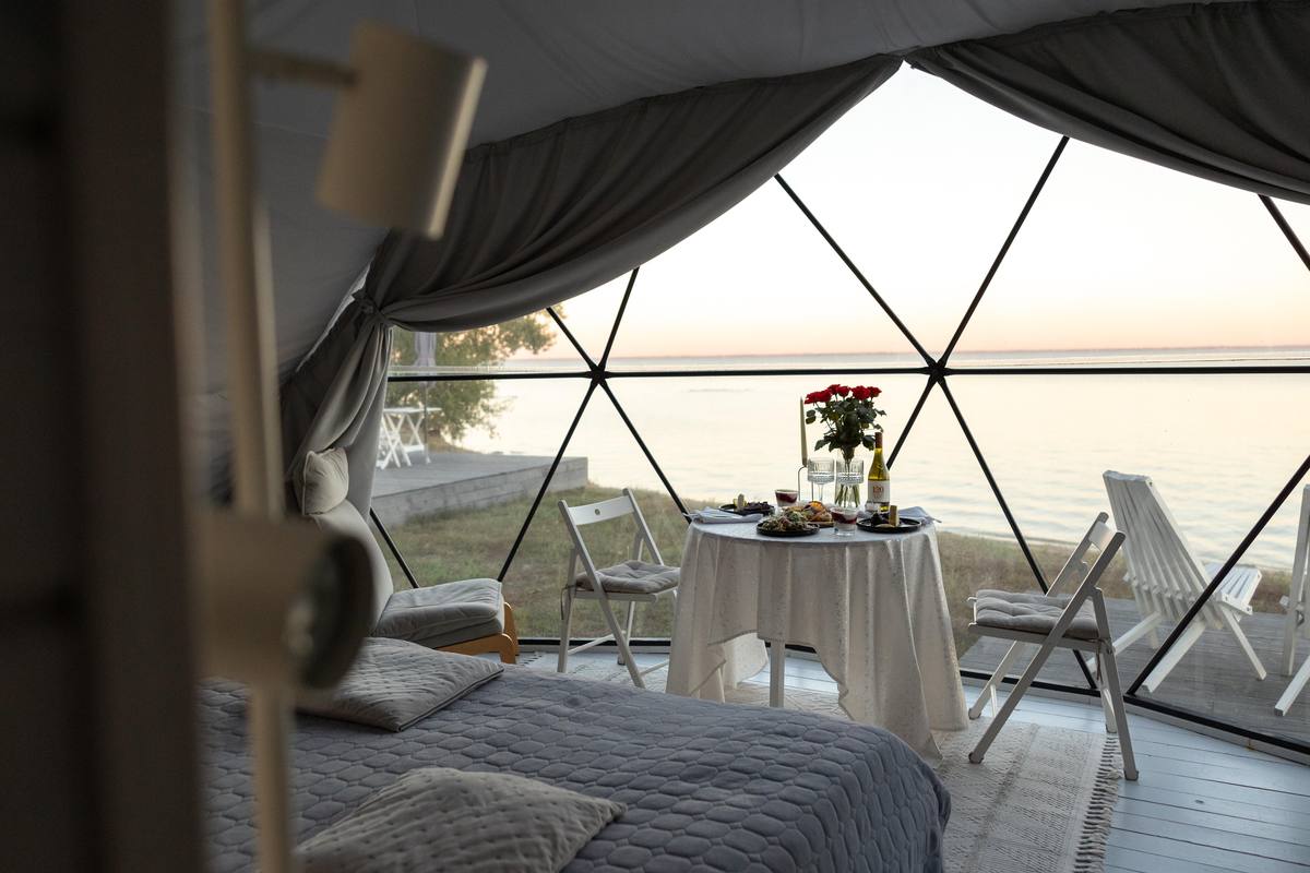 Глемпінг ecoSpace Sea на березі Київського моря — чудове місце для відпочинку в гармонії із природою в унікальних екологічних куполах-сферах, які мають зручності номерів преміум-класу. Куполи створені для ретриту, перезавантаження та особливих моментів, які проживають гості (є спецпропозиції для романтичних побачень та святкових подій).