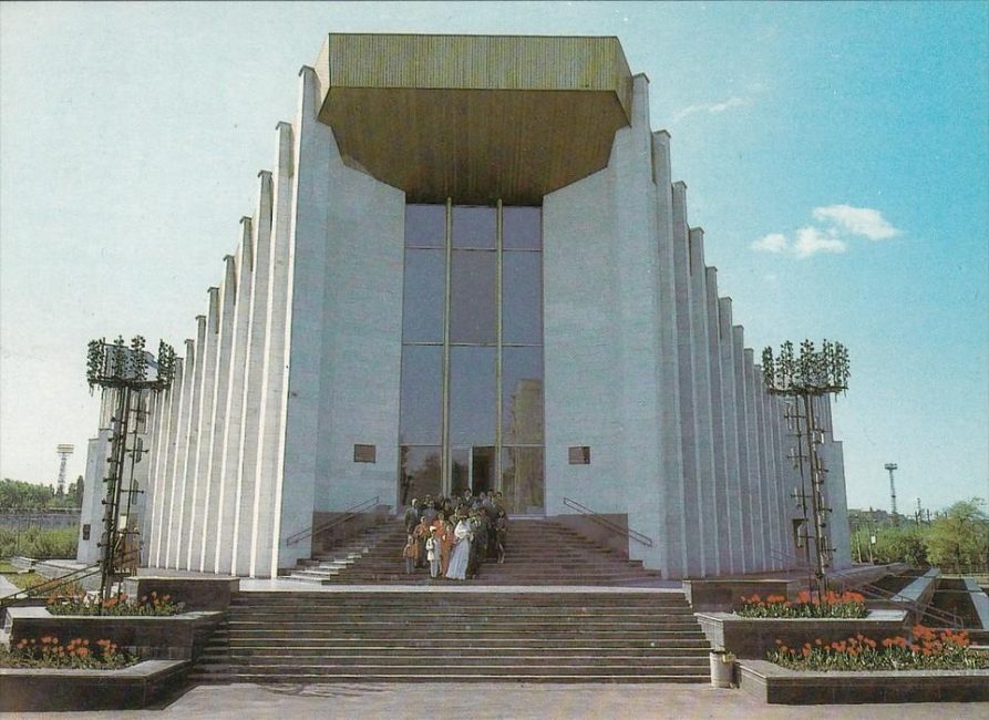 Колектив авторів спроєктував цікаву будівлю в стилі модернізму. Вона має три симетричних фасади, які дивляться в різні сторони світу. Вочевидь, це зробили для максимальної "конвеєрності" урочистого процесу.