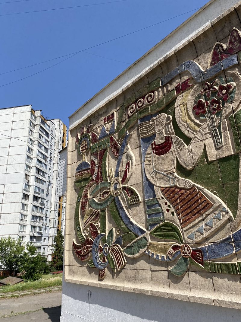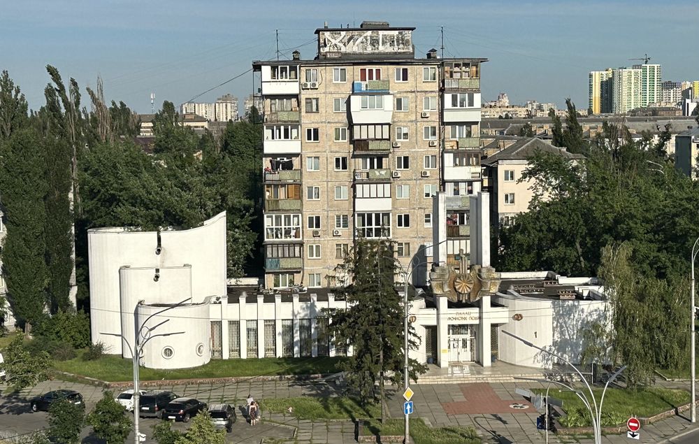 Цей РАЦС був збудований у 1984 році на одній з найвищих природних точок Києва — в нетрях Микільської Борщагівки на вулиці Якуба Коласа. Загалом це доволі стандартна одноповерхова будівля пізньорадянської доби, оточена такою самою стандартною забудовою. А от фасад РАЦСу прикрашає доволі цікаве монументальне керамічне панно "Молодята", яке вигідно розкривається для огляду за завдяки природному рельєфу.