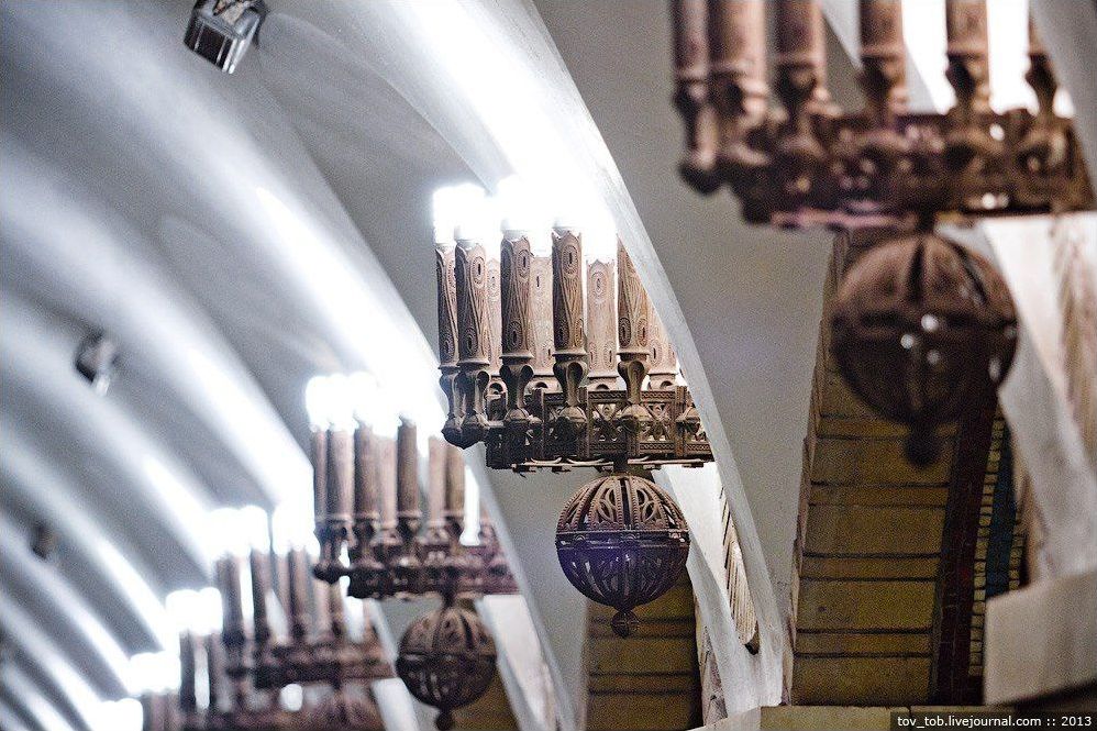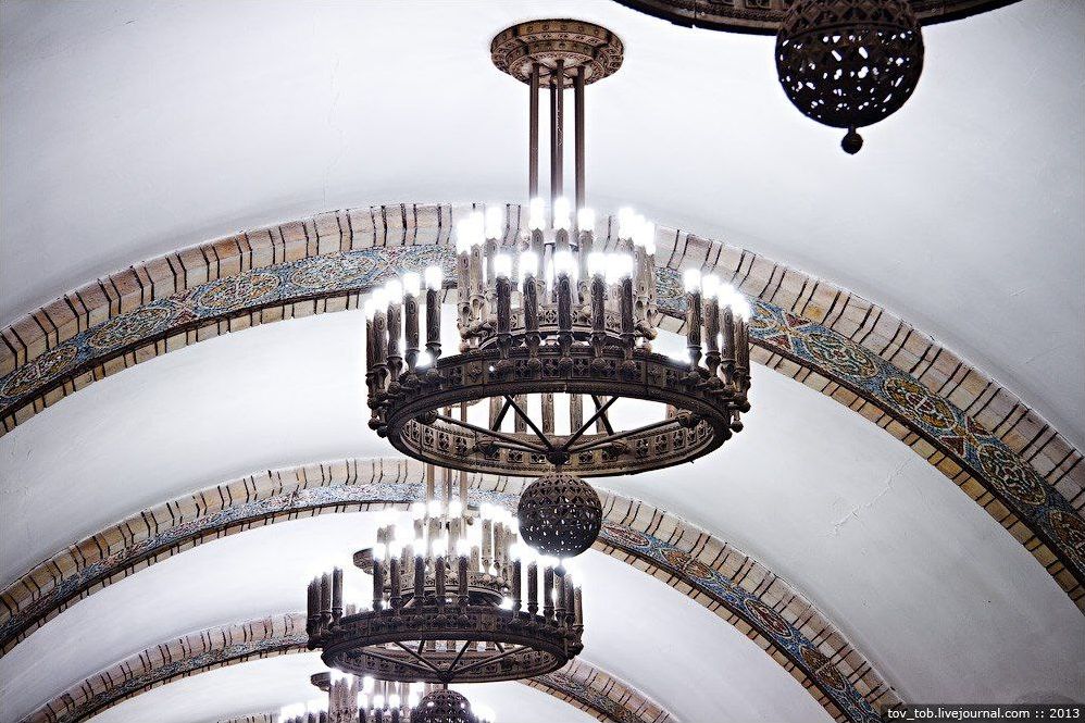 Оформлення станції доповнює жовта київська цегла, якою викладені арки по всій станції. А масивні бронзові люстри та настінні бра, що імітують старовинні свічні світильники, створюють ілюзію, ніби ти потрапив не на станцію метро, а у князівські покої.