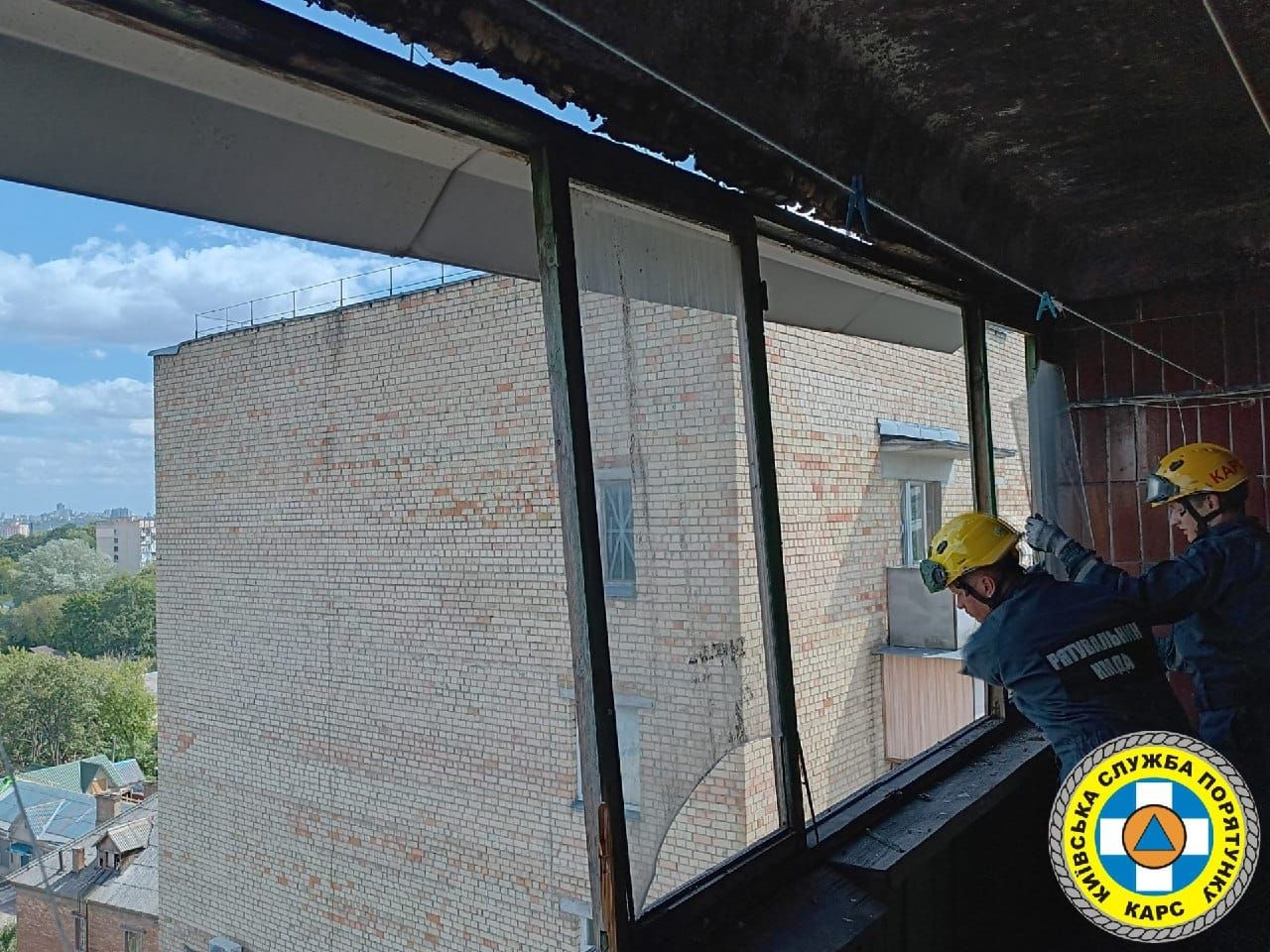 Того ж дня працівники КАРС відпрацювали ще один виклик, пов'язаний із сильним вітром: на житловому масиві Вітряні гори у Подільському районі балкон однієї з багатоповерхівок залишився без вікон та опинився в аварійному стані. Рятувальники вчасно демонтували конструкції, які могли впасти на перехожих із дев'ятого поверху, запобігши потенційній трагедії.