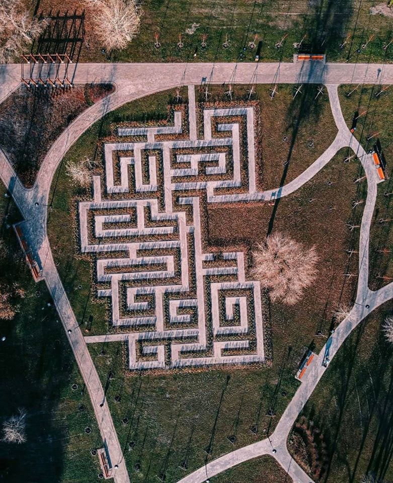 Один з найбільших зелених лабіринтів висаджений у парку "Відрадний". Він розкинувся на 1093 кв. м, де висаджено майже 3000 кущів кизильника блискучого, що отримав свою назву завдяки блискучому листю. Цей чагарник невибагливий у догляді й досягає трьох метрів заввишки. Протягом року лабіринт квітне різними барвами. Влітку листя кизильника темно-зелене, восени воно стає коричнево-червоним.