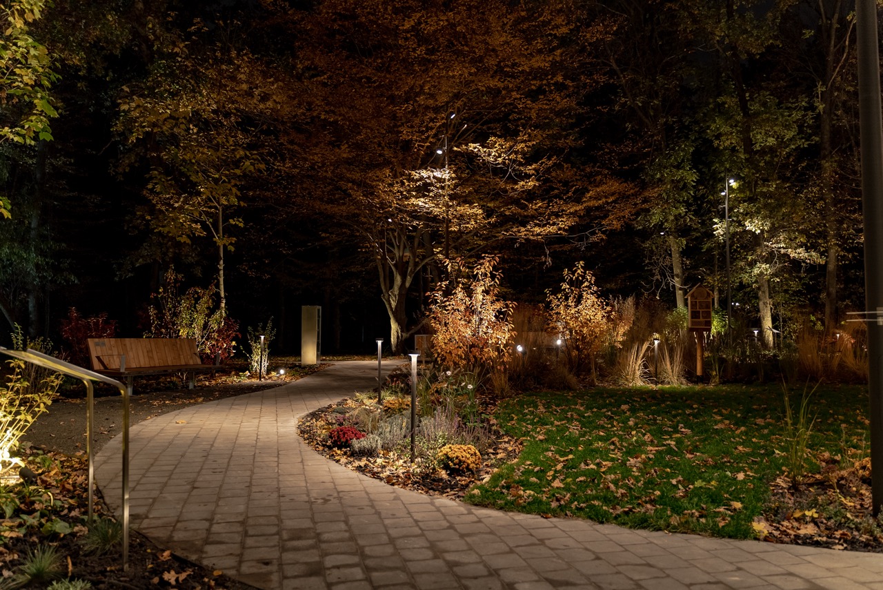З настанням сутінків включається спеціальне освітлення, яке розробила компанія Expolight — воно формує спокійні маршрути територіїєю та створює відчуття тепла й захищеності навіть у сутінках.