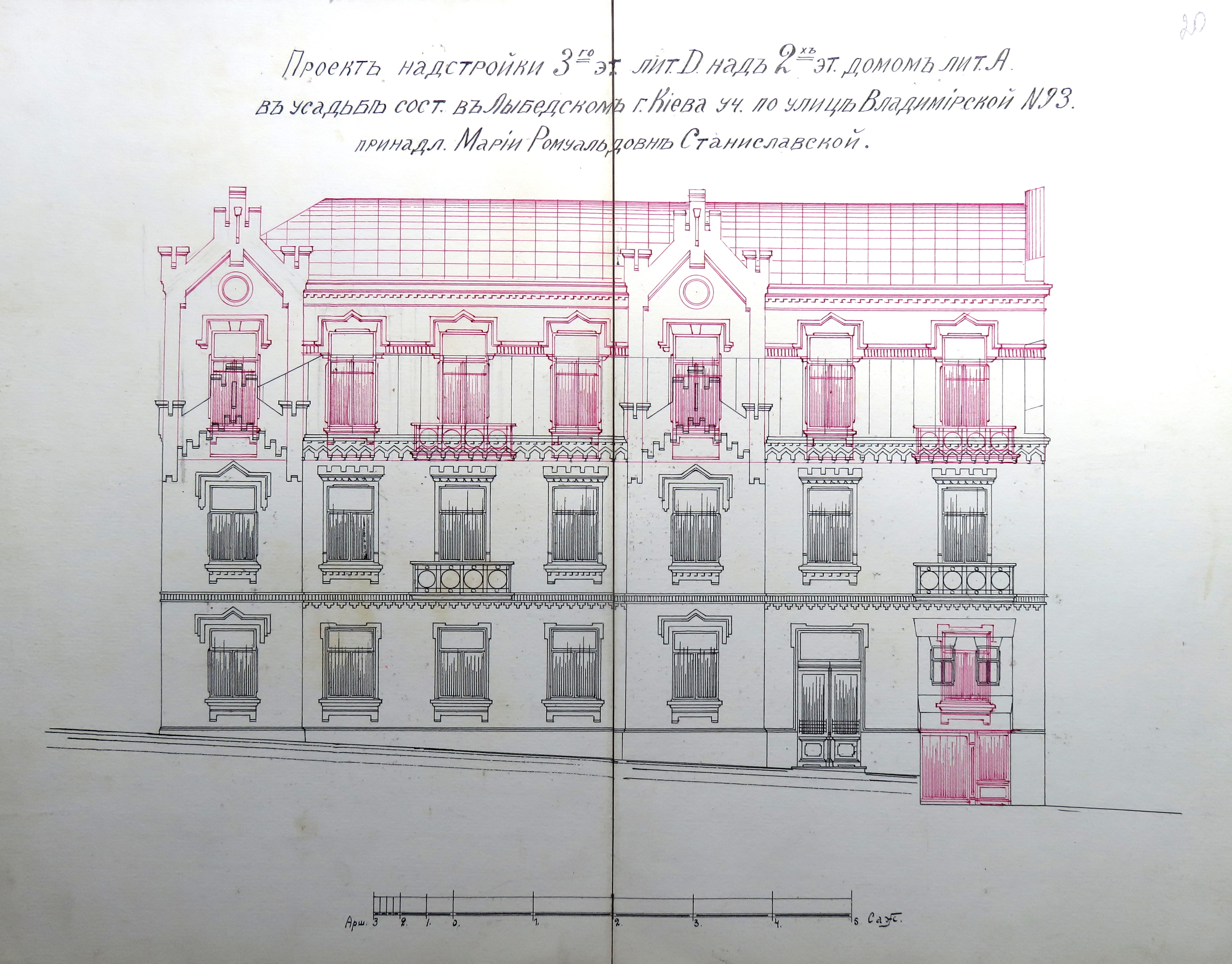 Але повернімося до Києва початку ХХ століття. Попри всі виявлені факти біографії, сам проєкт надбудови будинку на Володимирській, 93 дає лише третій відомий автограф графа Лєдоховського.