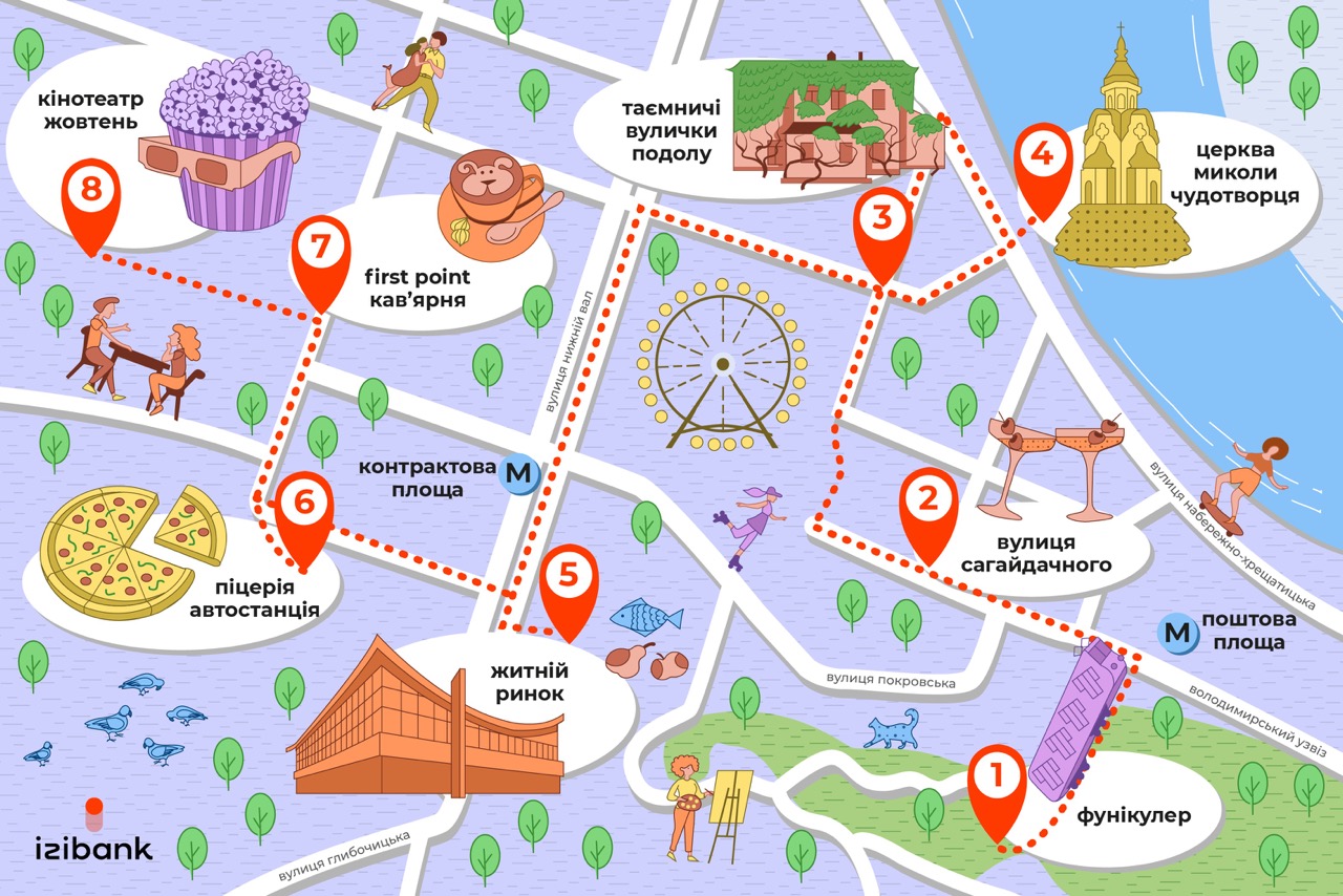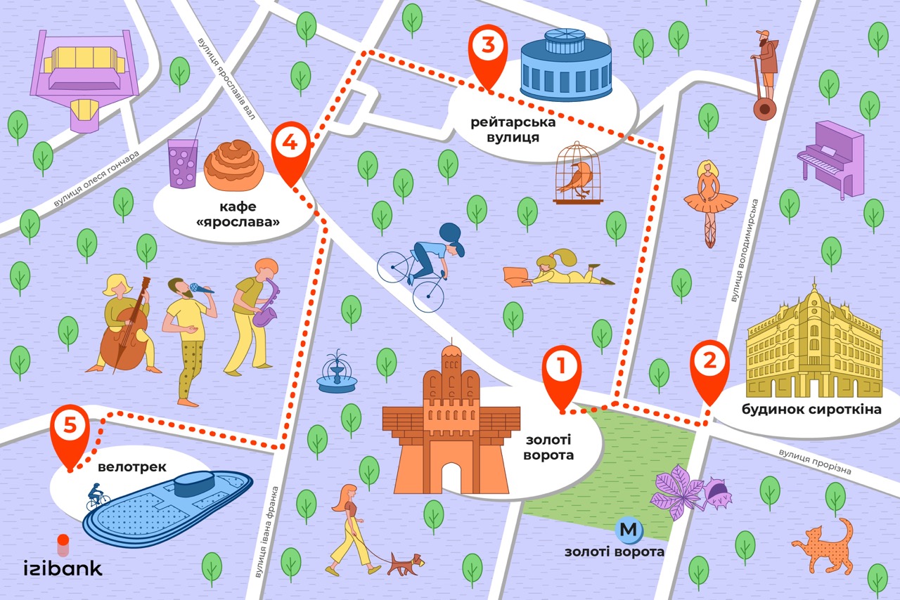 Разом з izibank ми продумали 4 маршрути, що допоможуть тобі знайти культові історичні місця (куди ж без них), щось новеньке в секретних локаціях, точки для перекусу, смачної кави, крутезних хот-догів та десертів. Ну і, звичайно, місця, які тобі захочеться сфотографувати.