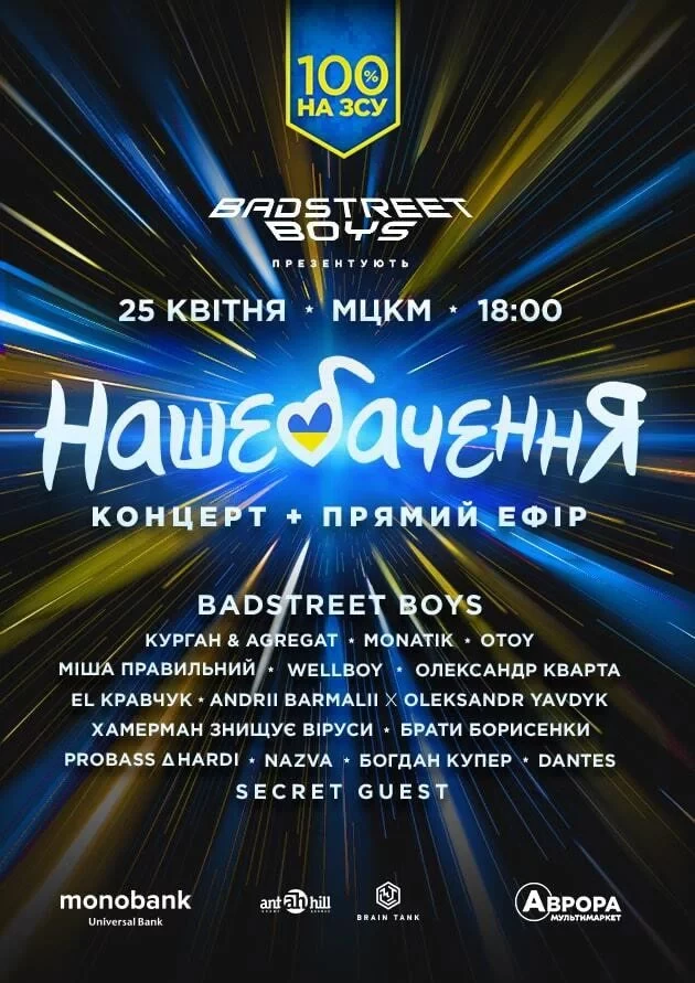 Гурт Badstreet boys запрошує на велику музичну подію. "Свого часу нас не взяли до Нацвідбору на Євробачення, — кажуть хлопці. — Тому ми вирішили зробити свій відбір із класною музикою, суддями та глядачами, де переможцем буде ЗСУ. Ви голосуєте за учасників донатами, 100% з них піде на воєнні потреби".
