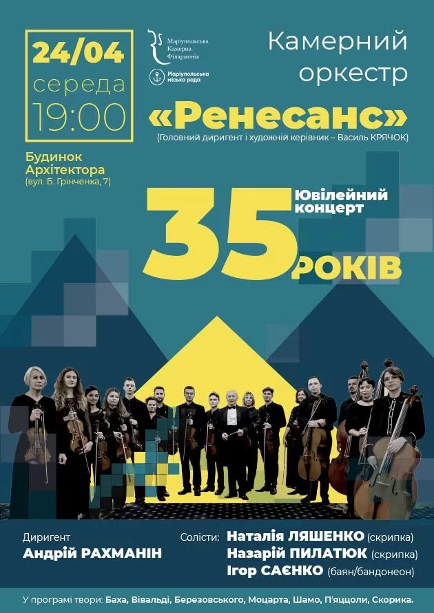 24 квітня маріупольський оркестр "Ренесанс" святкує 35-річний ювілей.