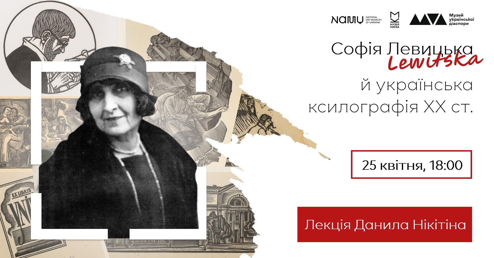У виставковому проєкті "Українці на Монмартрі" особливе місце належить ілюстраціям української французької художниці Софії Левицької до збірки повістей Миколи Гоголя "Вечори на хуторі поблизу Диканьки" 1921 року. Вони виконані технікою ксилографії, тобто гравюри на дереві. У лекції Данила Нікітіна, завідувача відділу графіки Національного художнього музею України, мова піде про технічні особливості ксилографії та про історію цієї техніки, що сягає часів Середньовіччя. Проте основну увагу буде приділено ширшому екскурсу в українську ксилографію ХХ сторіччя.