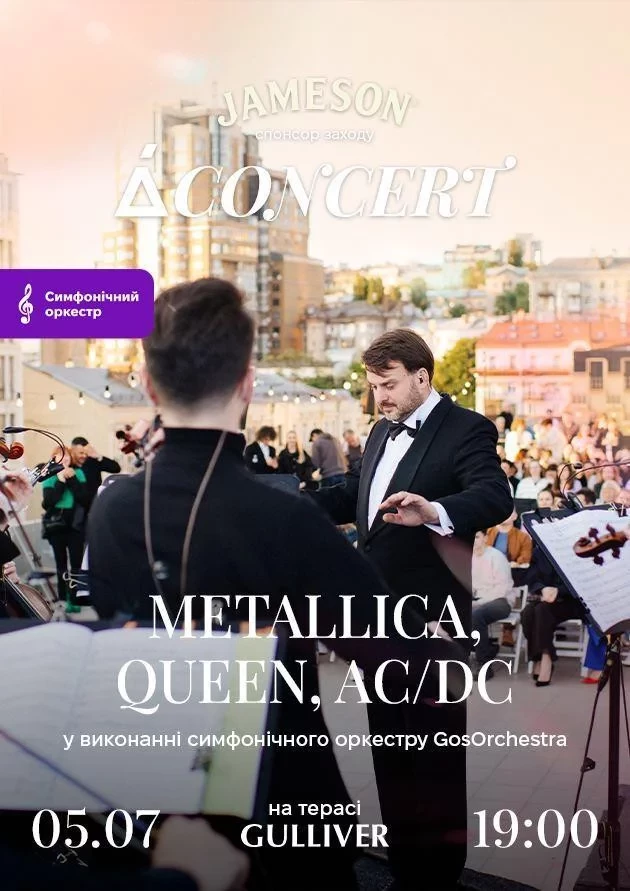 У цій програмі зібрані хіти культових рок-гуртів: музиканти GosOrchestra виконають Highway To Hell, Back In Black, Enter Sandman, Nothing Else Matters, Bohemian Rhapsody, Don`t Stop Me Now та багато інших у симфонічній обробці. Насолодися заходом сонця на атмосферній терасі в центрі Києва під звучання улюблених пісень!