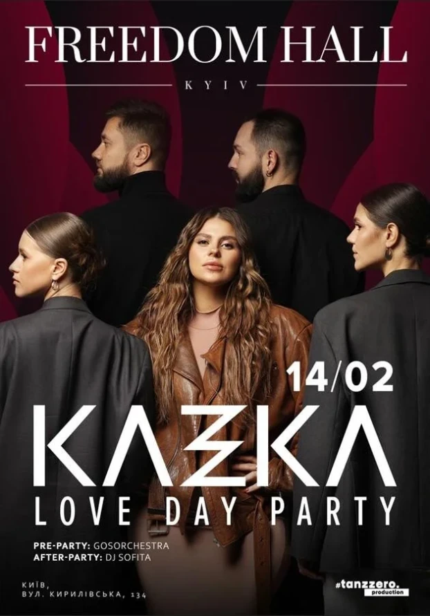 Хедлайнером цієї вечірки до Дня закоханих стане гурт KAZKA зі своїми найкращими хітами. А ще у заході візьмуть участь симфонічний оркестр GosOrchestra та молода українська діджейка Dj Sofita.
