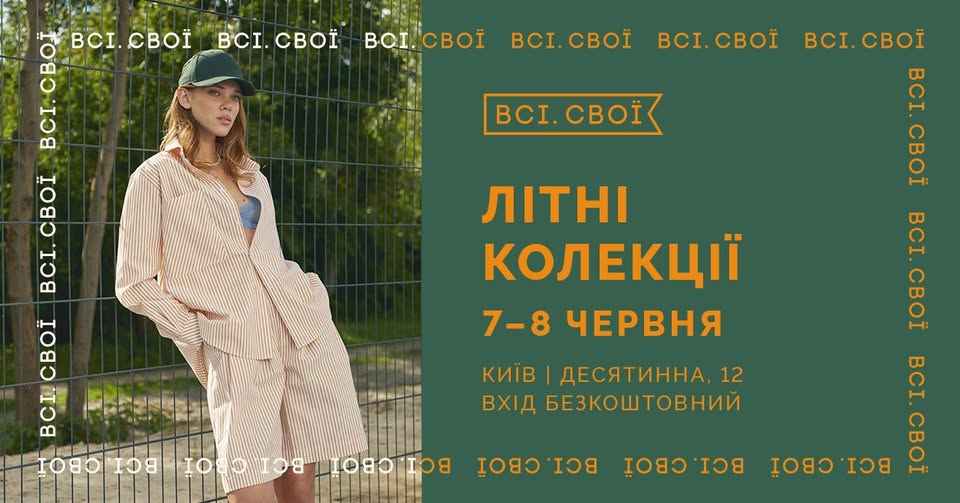 "Всі. Свої" зустрічає літо маркетом "Літні колекції". Тут буде безліч літнього одягу, взуття й аксесуарів від українських виробників: лляні сукні, бавовняні футболки, муслінові сорочки, вільні сарафани та спідниці, зухвалі топи, широкі штани з натуральних тканин, а також сумки, прикраси, сандалі, босоніжки, мюлі, клоґи, кеди, мокасини, балетки, кросівки та багато іншого.