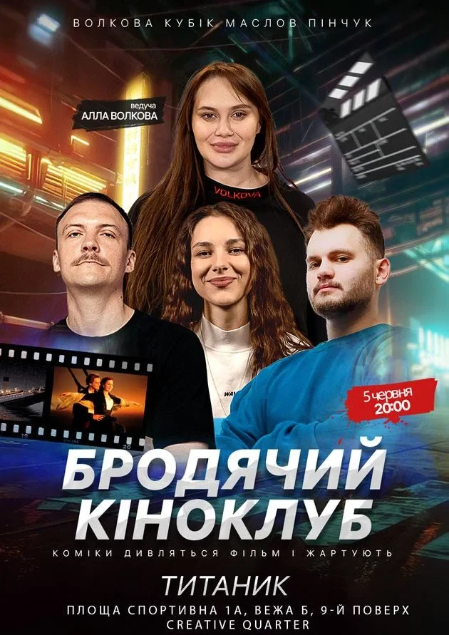 "Бродячий кіноклуб" — нове стендап-шоу, де коміки обговорюють культове кіно, розбирають знакові сцени з нього, а також намагаються проаналізувати сюжет через гумористичну призму.