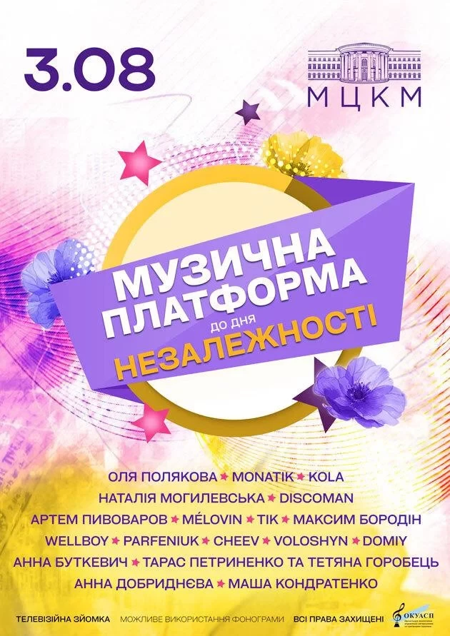 Радувати цього разу будуть Оля Полякова, MONATIK, KOLA, Наталія Могилевська, Артем Пивоваров, DISCOMAN, MÉLOVIN, гурт ТІК, Максим Бородін, WELLBOY, PARFENIUK, CHEEV, VOLOSHYN, Тарас Петриненко і Тетяна Горобець, Анна Добриднєва, Маша Кондратенко й інші виконавці.