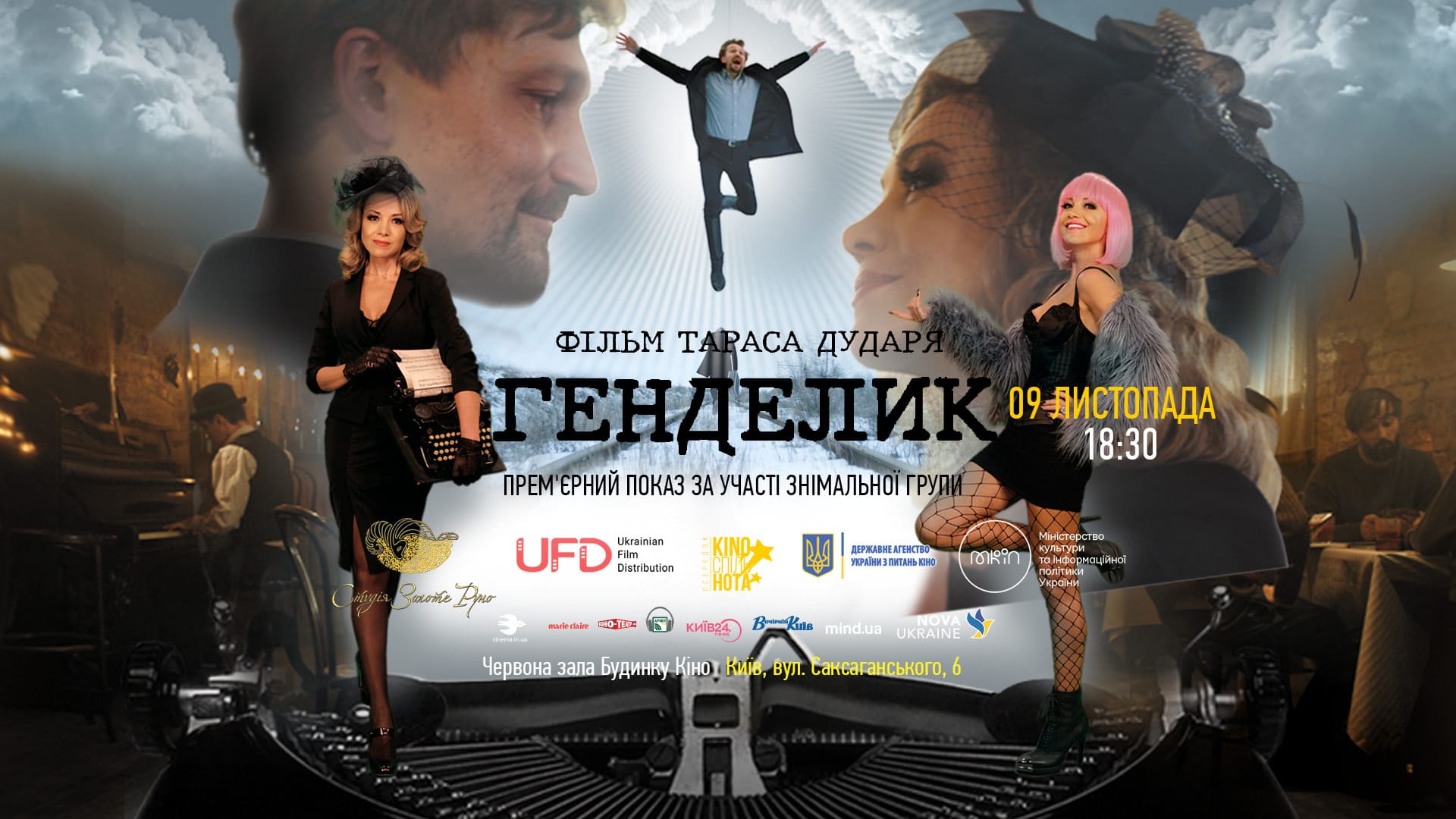 У Будинку кіно пройде прем'єрний показ комедії "Генделик" режисера Тараса Дударя. Її зняли 2019-го, але переносили через пандемію та повномасштабну війну. Розповідає про сценариста, який через творчу кризу не здає вчасно текст. Замовник — кримінальний авторитет погрожує його вбити. Герой тікає з міста й потрапляє до загадкового кафе "Генделик", де зустрічає давніх друзів і дивних незнайомців, за сюжетом. Після перегляду буде обговорення фільму з творчою групою.