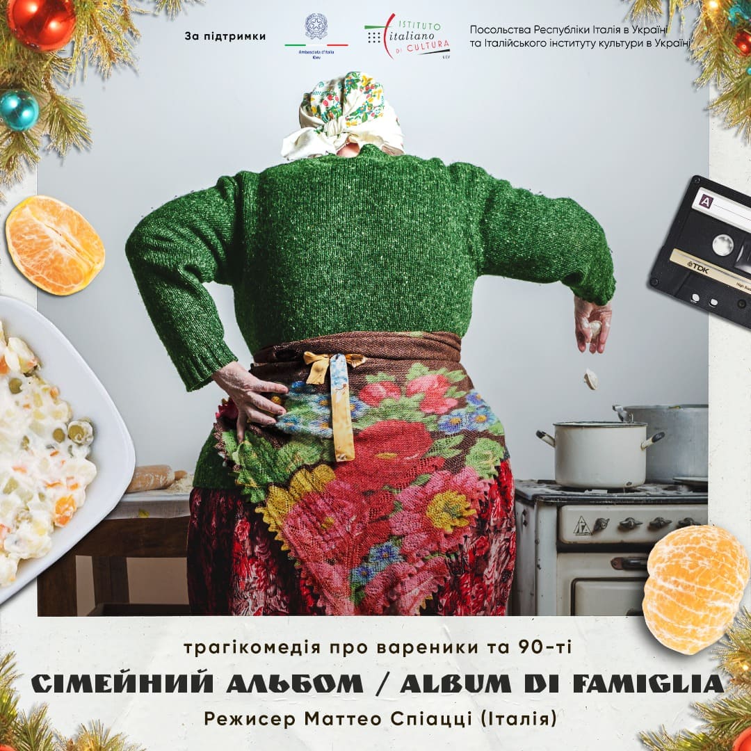 У Театрі на лівому березі покажуть комедію дель арте "Сімейний альбом" італійського режисера Маттео Спіацці. Виставу описують як історію про конфлікт поколінь на зламі часів. Події відбуваються в Україні 1990-х років. У квартирі старого будинку разом живуть бабуся, її син із дружиною та онук, за сюжетом. Актори не говорять жодного слова і грають у великих масках.
