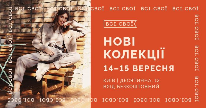 "Всі. Свої" запрошують на перший маркет сезону — "Нові колекції", який збере осінні новинки українських брендів. Буде одяг, взуття, сумки, аксесуари та прикраси. П'ять поверхів на Десятинній, 12 заповнять 170+ брендів зі своїм крамом. Буде представлено широкий асортимент базових речей, трикотажу, верхнього одягу, костюмів, суконь, спідниць тощо. Також на маркеті можна придбати стильні аксесуари та прикраси від українських виробників.