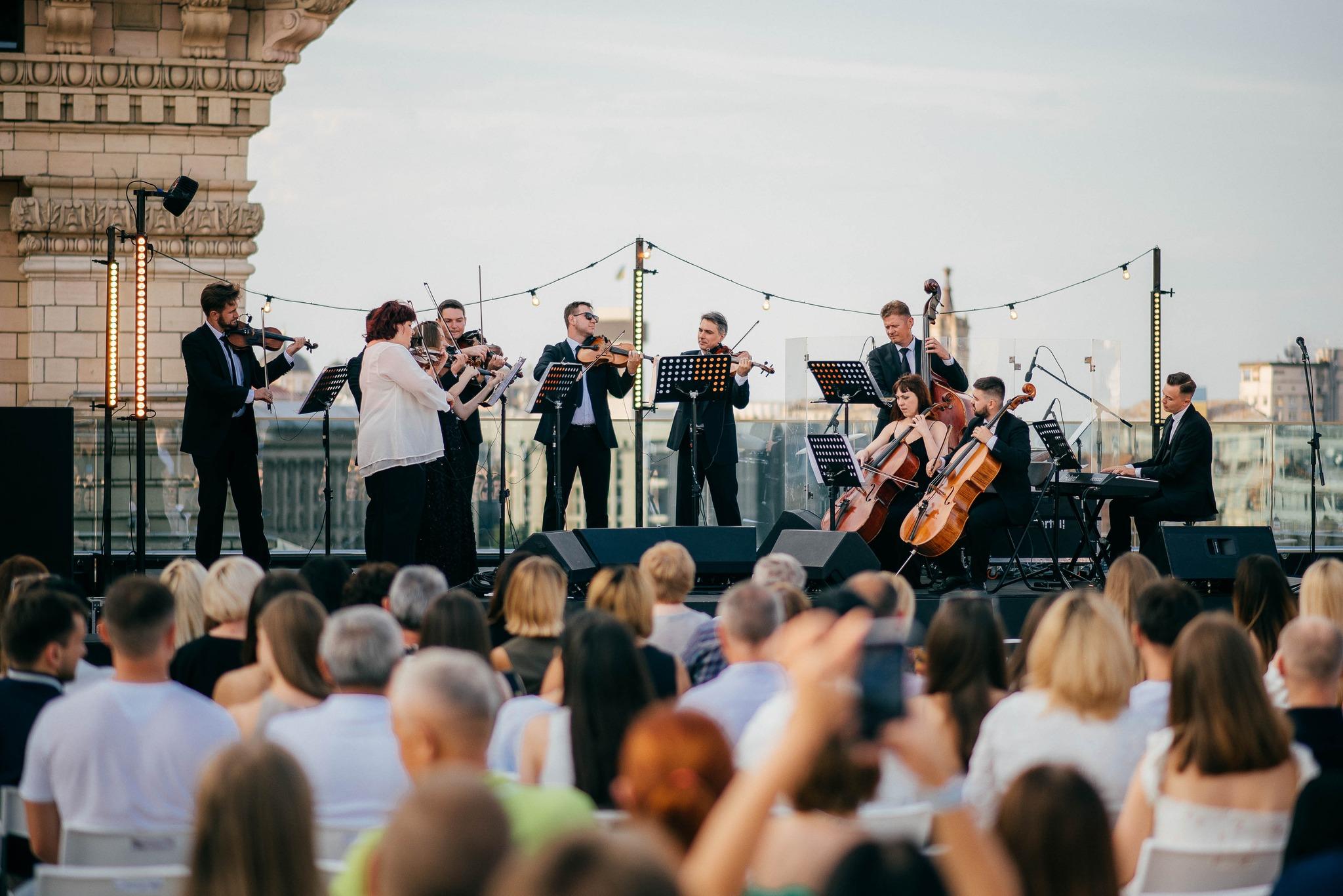 Цього вечора на даху в серці Києва найкращі класичні музиканти столиці гратимуть хіти Queen, The Beatles, Pink Floyd, Led Zeppelin, The Rolling Stones, Depeche mode, OZZY OSBOURNE, Deep Purple, Genesis, Coldplay, The Police та багатьох інших виконавців.