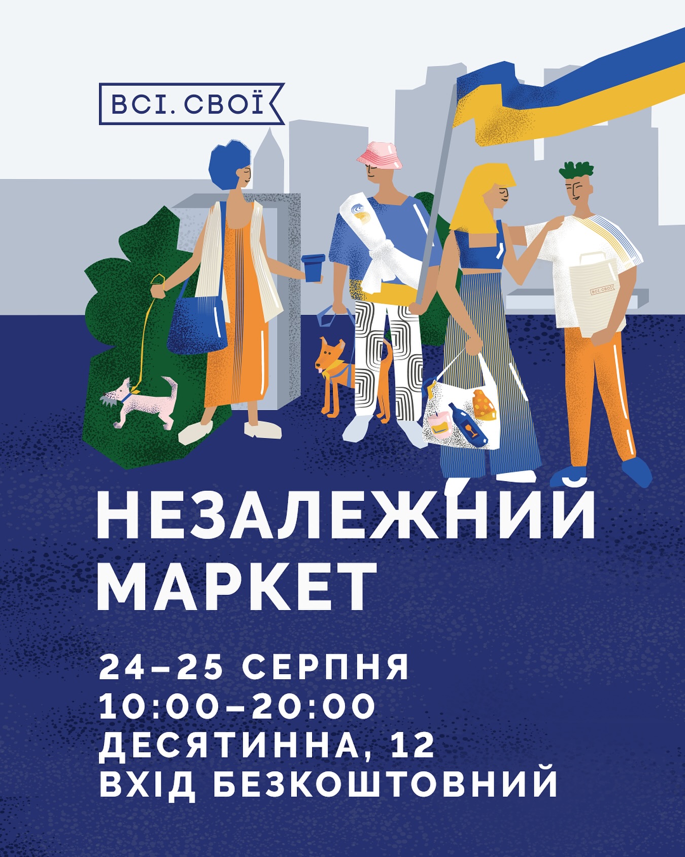 Команда "Всі. Свої" збирає локальних виробників на Незалежний маркет! П'ять поверхів локації заповнять майже дві сотні брендів. Вони презентують декор для дому, текстиль, кераміку, канцелярію та сувеніри, гастрономію, одяг та аксесуари. А ще — патріотичне вбрання та багато інших тематичних виробів, присвячених Україні.