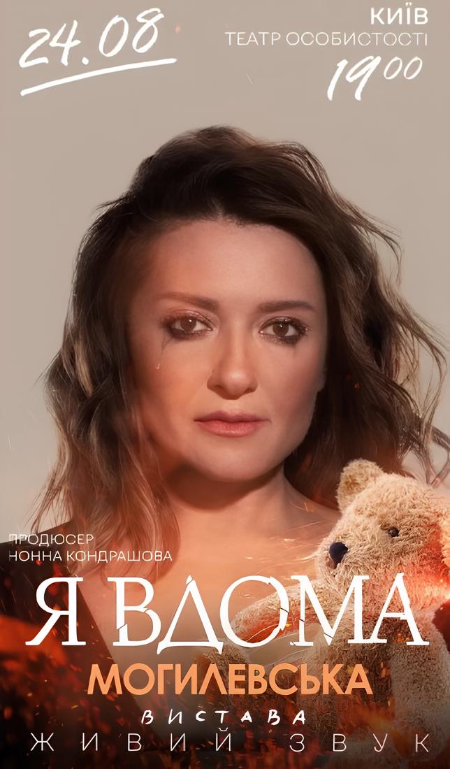 Це, мабуть, одна з найемоційніших і найзворушливіших концертних програм Наталії Могилевської. Ось уже кілька місяців вона представляє нове шоу під назвою "Я вдома". За своєю суттю це моновистава, в якій зібрані всі сльози українців, всі їхні емоції у віршах і піснях. "Я вдома" — це проєкт-драма, рефлексія на війну. Тут Наталя Могилевська не лише співатиме, а й читатиме вірші Юрія Рибчинського і... говоритиме. Вона також виконає композицію, яку присвятила своєму дядькові з Маріуполя (він загинув від рук росіян).